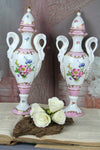 Amazingly beautifull pieces from FrancePAIR Porcelain Vasespink floral decormarked at bottomswan handles37cm tall each exclusive beautifull pair