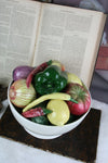 Antique European Center basket with fruits / vegetablesfaience porcelain marked spanish piece19cm tall and 23 cm diameter circa...