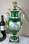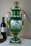 A french limoges porcelain lampwith landscape decor and caryatids on sidessigned by maker a unique piece 47cm heightgood...