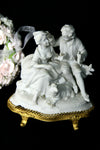 Antique German UNTERWEISSBACH Statue groupin white bisque porcelainromantic couple with sheep marked at bottom on a brass base...