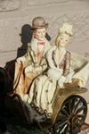 Large capodimonte marked AURO BELCARI porcelain statuecoach with romantic couple and horse 1960s italy36.5 cm lenght and 16.5...