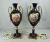 PAIR french porcelain vases in cobalt blue limoges porcelain with victorian romantic scenes 50 cm height each 1950/1960...