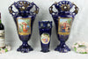 Set of 3 Austrian Josef Strnact Ceramic Vases setdark blue with romantic decor large vases are 40 cm...