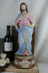 1900 Belgian vieux andenne porcelain bisque Statuesacred heard christ with gorgeous soft pastel colours and a base with...