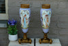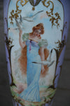 PAIR antique faience porcelain VasesWith lady portrait decors 42.5 cm height1920sone has been repaired but still very presentable...