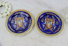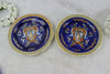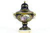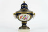 Antique French small centerpiece lidded Bowl in cobalt blue sevres porcelain , marked bottomwith victorian romantic scene frontside...