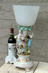 gorgeous German antique centerpiece Vase With porcelain couple figurines and relief majolica floral decoron top a white opaline...