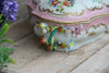 Gorgeous Porcelain bowl lidded centerpiecewith floral decor and majolica encrusted relief flowers on top and sides very beautiful...