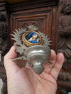 antique gorgeous french holy water font20 x 13 cmbegin XXthcmetal And porcelain medaillon with hand paint madonna portrait