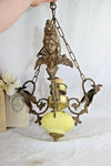 A gorgeous piece from FranceBrass chandelier with a faience yellow coloured base with caryatids figurines 1 central light...