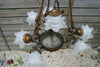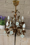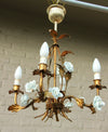 Gorgeous vintage french chandelier from 60sMEtal gold gilt in form of a flower bouquet With porcelain white rose...