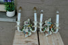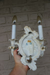 Antique Dresden marked porcelain wall lights 2 arms ( can be clicked in and out) marked at back...