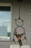 Gorgeous french bronze chandelier with porcelain flowersa putti figurine centrally7 light bulbs can be placed good condition (...