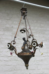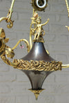 Antique Empire style french chandeliercirca 1930 With central a putti / cherub brass / tole and small porcelain...
