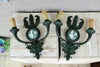 Antique PAIR French wall lightsbronze with a dark green patinain the middle wedgwood porcelain medaillons with romantic putti...