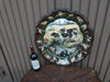 vintage 60/70s XL porcelain faience plaque plate hand paint decor with pointers and birds ( hunting theme)probably italian marked...