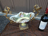 Gorgeous vintage spanish porcelain & brass centerpiece bowlwith dragon handles very beautiful piece from 70s44 cm lenght and...