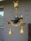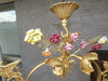 vintage bronze chandelier with porcelain flowers madonna figurine in middle and i think saint john the baptist at...