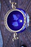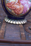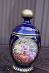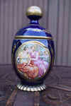 vintage 1970s cobalt blue porcelain bonbonniere box /vaseliddedwith romantic scenesmall spot top ball repaint see pic 18 x...