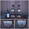 pair vintage acf sevres marked porcelain vaseswith victorian scenesvery beautiful setwith a sevres mark at back 46 x...
