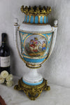 French porcelain Vasecirca 1900brass louis XVI baseRomantic scene on frontside and floral decor at back45 cm height and...