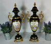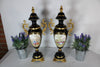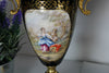 pair vintage limoges cobalt blue porcelain vasesmarkedwith romantic decors43 x 18.5 cm each1960 / 1970
