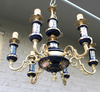 Gorgeous french Chandelierin cobalt blue limoges porcelain with floral decor6 arms53 cm wide and 55 cm height, extra...