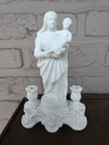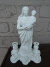 antique french 19thc bisque porcelain statue of a madonnawith candle holders next to her 17 x 11 cm...