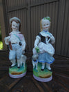 antique belgian vieux andenne bisque porcelain boy & girl statue20 cm height19thcsmall repair hairline leg boy