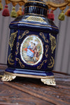 vintage cobalt blue porcelain lampwith original shade1970s49 cm height and 14 cm wide base