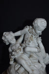 antique french or german bisque porcelain putti playing group statueon stone marble basevery beautifulsmall nicks at guirlande19 cm...