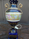 italian keramos marked cobalt blue porcelain lamp1970sfloral decor 40 cm heightsome small nicks finish see pic   WORLDWIDE...