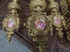 pair brass / porcelain medaillons wall lights sconceseach with 3 armsneeds to be wired again 40 cm height...