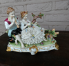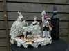 Antique German porcelain LAce porcelain group with musiciansmarked underside mid 20thcSome lace decor dress gone and chips fingers...