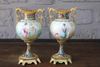 pair antique rare to find miniature vasessevres hand paint porcelain middle parts and cloisonne enamel inlay decor in...