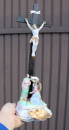 antique rare to find calvary Crucifix holy water font 19thcvieux paris porcelain bisquegood condition with minimal wear43 x...