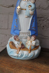 Antique Belgian 19th century standing holy water font with crucifixwith vieux andenne bisque porcelain angel and jesus corpusvieux...