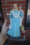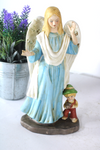 vintage 1970s german porcelain figurine statueangel with child with rabbit22,5 cm height