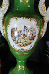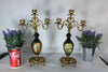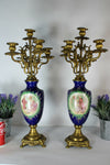 vintage acf sevres marked porcelain candelabraswith victorian scenesmarked back 35 cm height and 20.5 cm wide1970sbrass arms ( ...