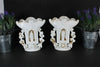 antique pair religious vieux paris porcelain vaseschapel with mary / joseph figurine in them very beautiful religious set17.5...