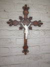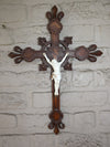 antique french crucifixwood carved cross/ porcelain corpus47 x 33,5 cmgood conditionfirst half XXth century