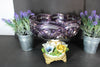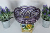 Gorgeous vintage Centerpiece with a crystal glass bowl and porcelain flowers basevery beautifulamethyst purple coloured crystal glass which...