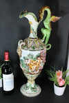 vintage capodimonte porcelain marked pitcher ewerdecorated with a dragon handle , putti cherubs satyr devil ...very special marked...