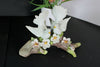 gorgeous french vintage chandelier from 1970s metal gold gilt with pink porcelain flowers good conditon with minimal traces...