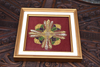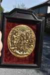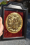 antique French religious wall plaque panelwith inside a bronze medaillon with coronation of mary behind glasscirca 1900s35.5 x...