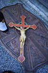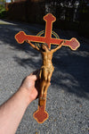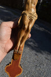 antique 19thc wood carved hand paint crosswith a chalk corpus christ ( repair arm ) can be easily...