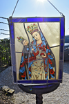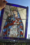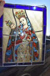antique dutch Stained glass window panelsterre der zee madonna 42.5 x 32.5 cm 1950s small crack in bottom...