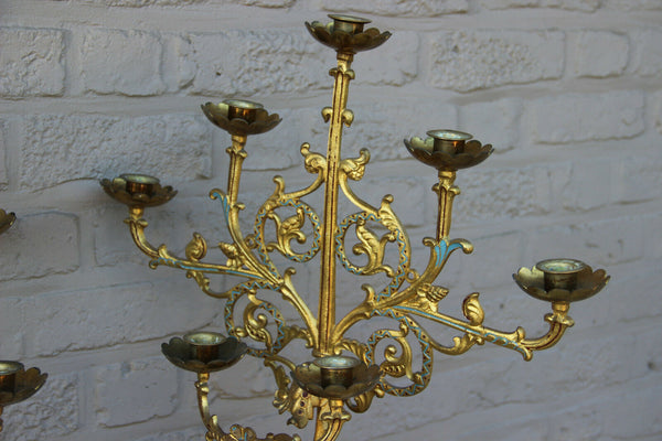 Rare XL Antique Religious Altar church Candelabras gothic dragon enamel
