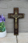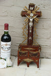Gorgeous antique French crucifixtramp artmade of wood of cigar boxesartisan made so each piece is unique45 cm height...