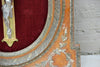 A gorgeous French crucifix in a framemetal cross and christ on red velvetframedpretty large piece 57 x 51...